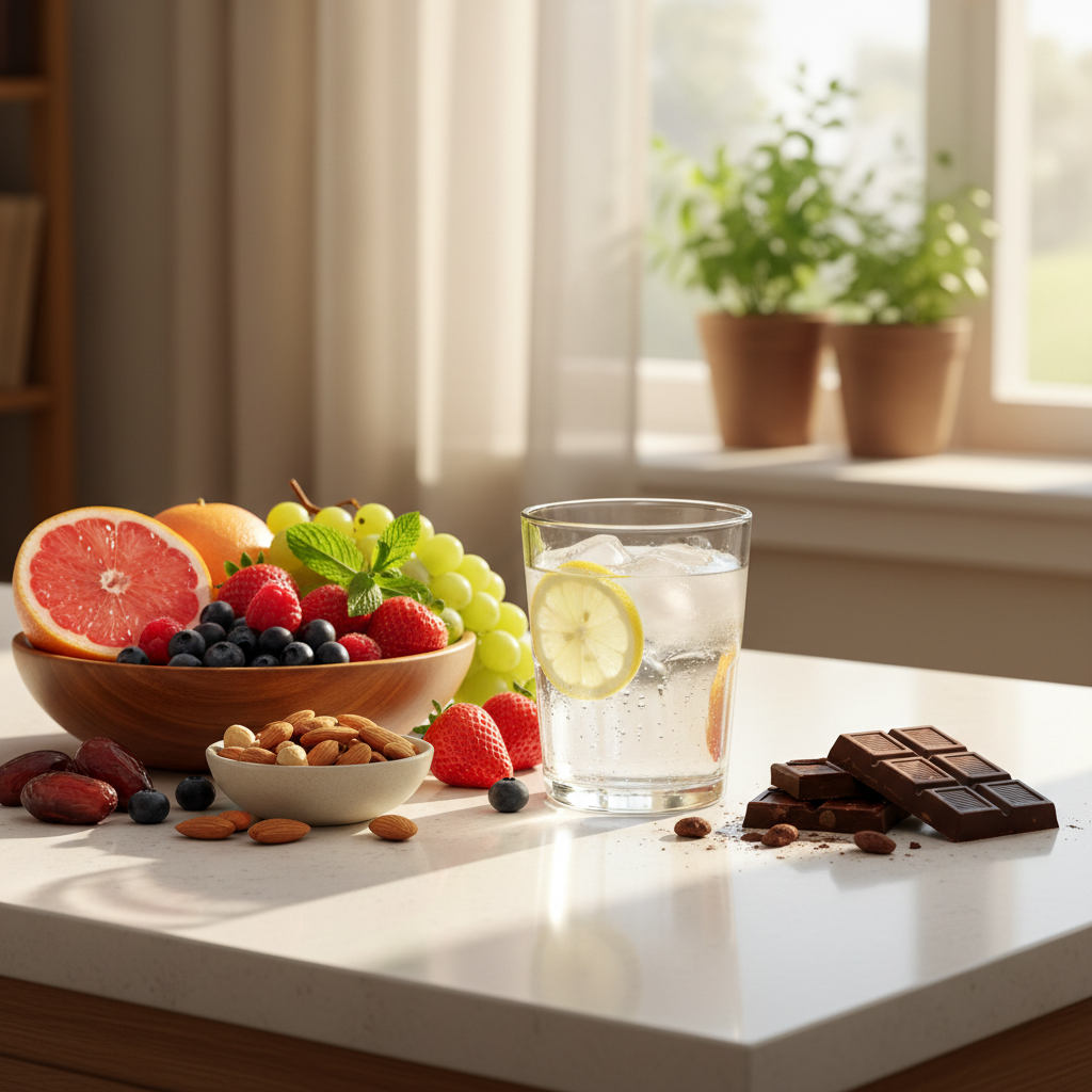- Dark chocolate (70%+ cacao -- two squares, not the whole bar)