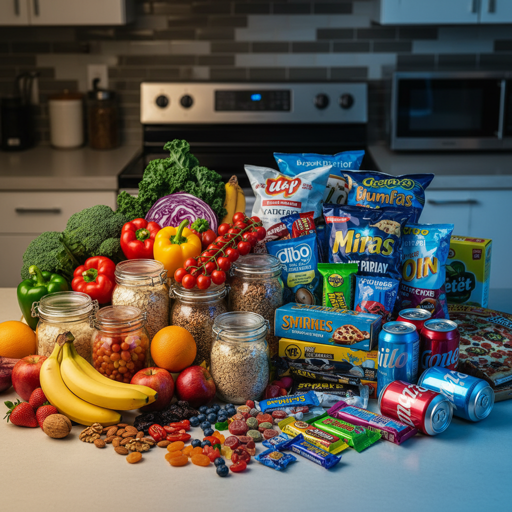 - Ultra-processed foods (UPFs) -- industrial formulations with five or more ingredients, usually including substances you wouldn't find in a home kitchen: high-fructose corn syrup, hydrogenated oils, emulsifiers, flavor enhancers, colorings.